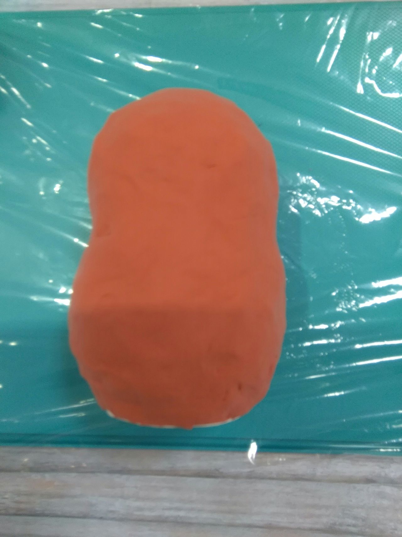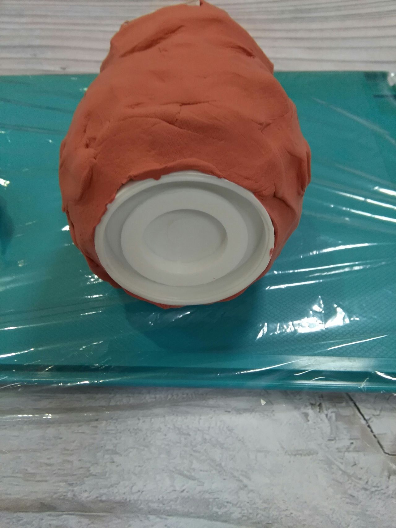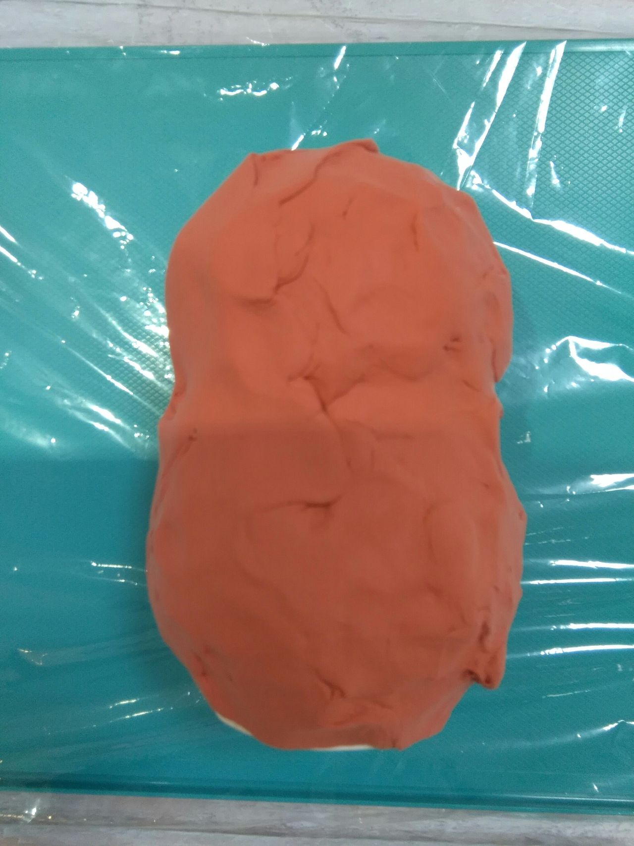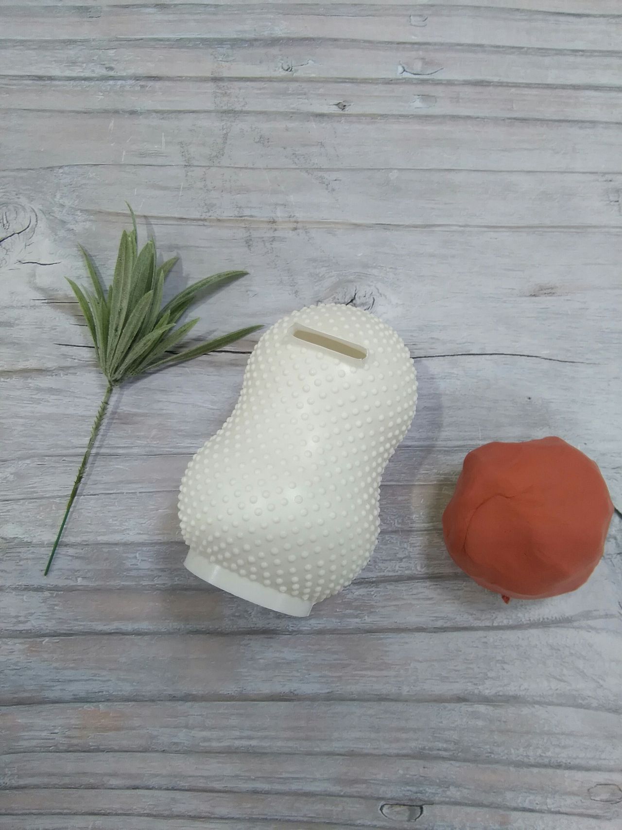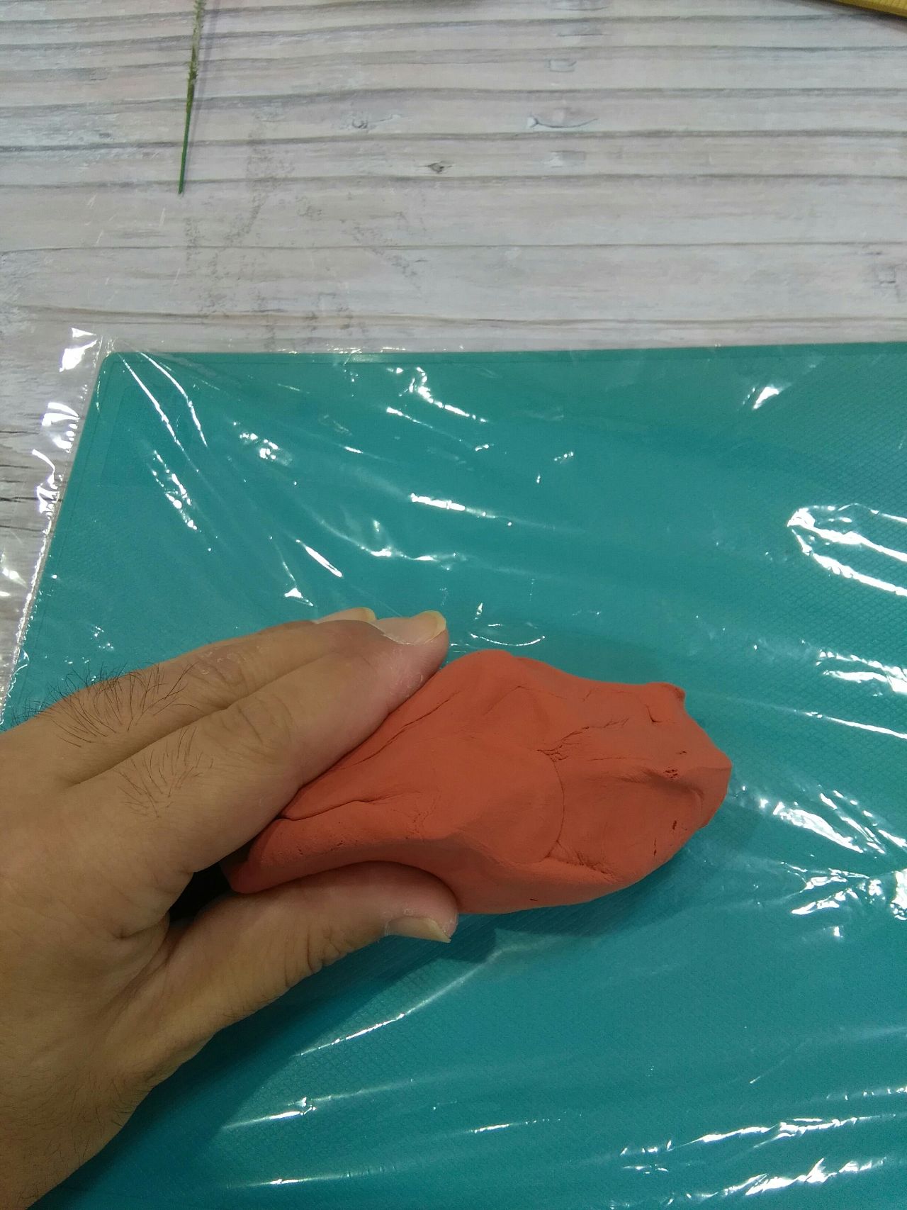 中央がはにわの土台。右が粘土。左がアクセントの葉の飾りです