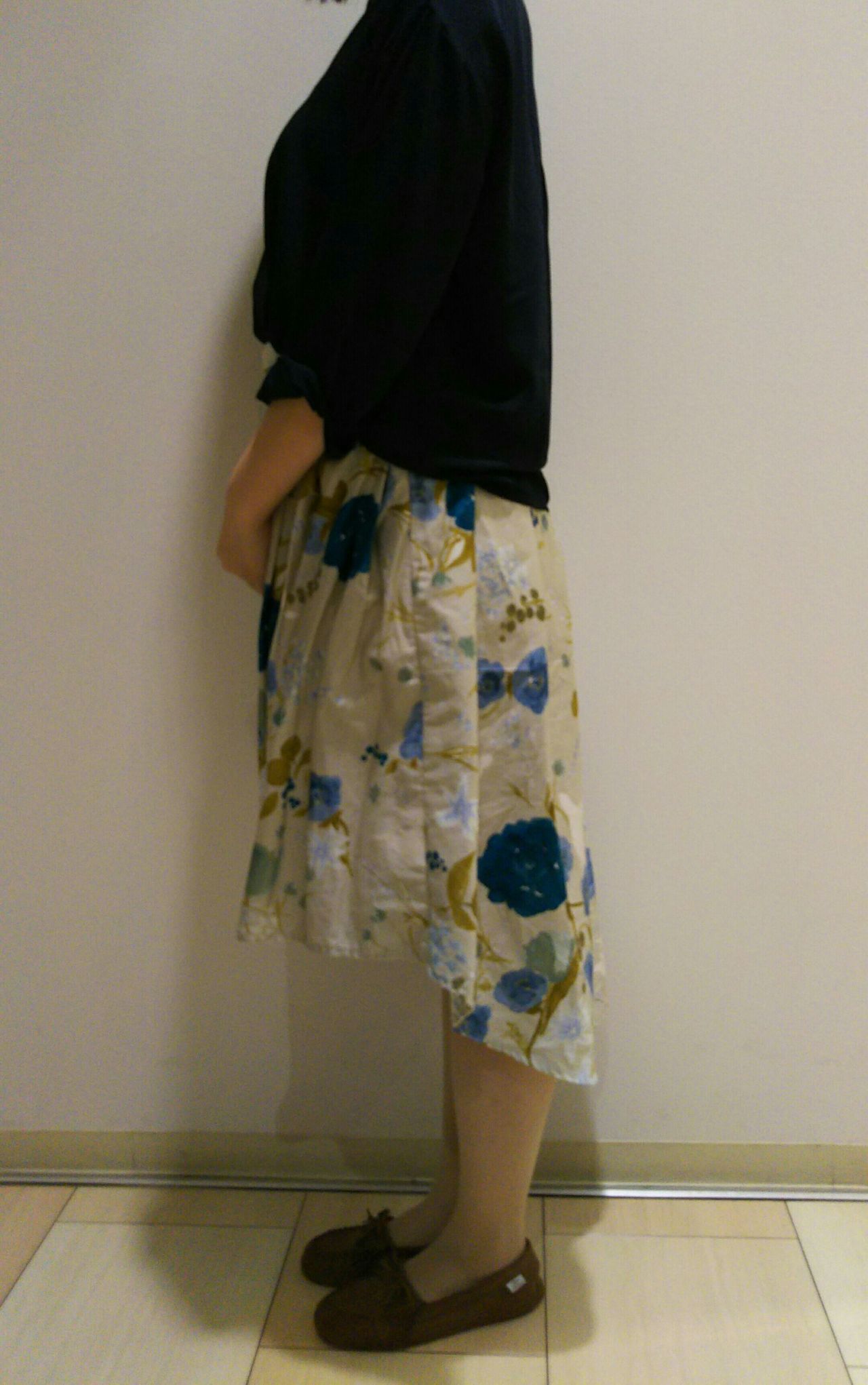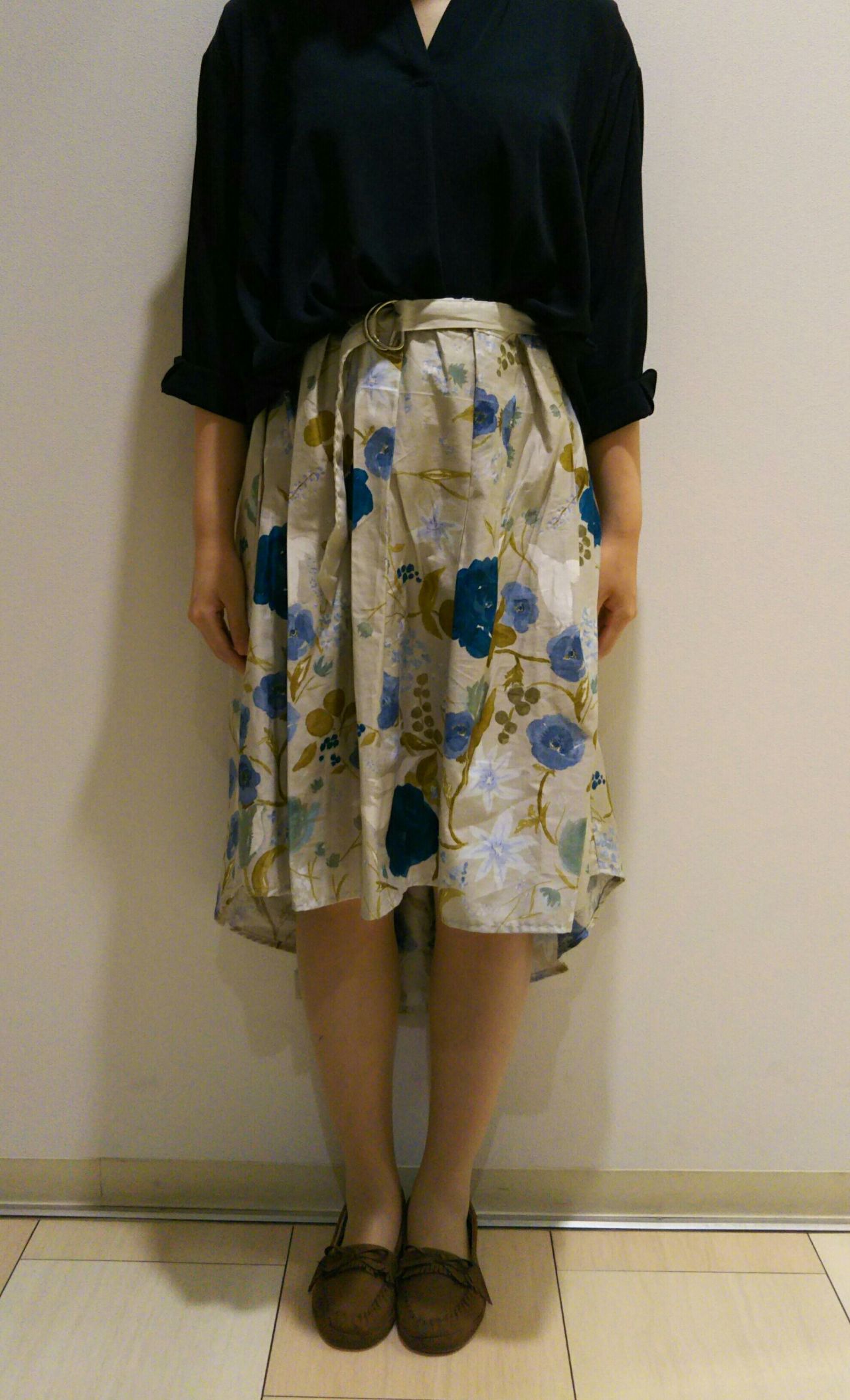前後の裾の長さを変えて、ベルトを付けてみました。