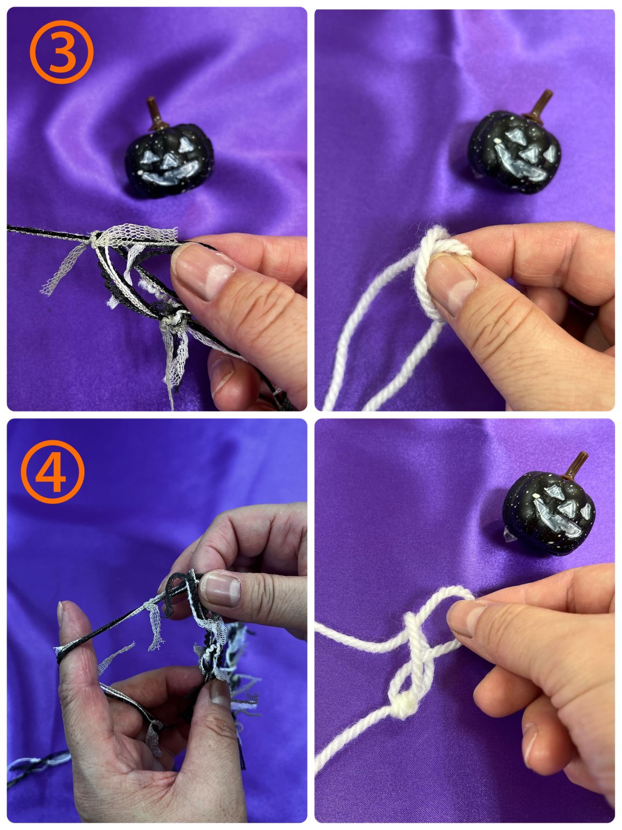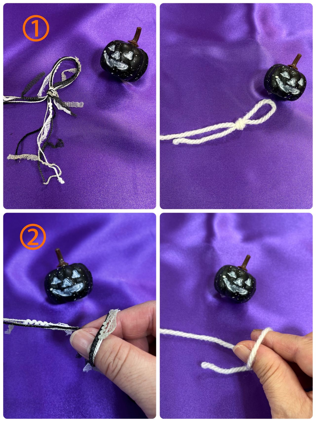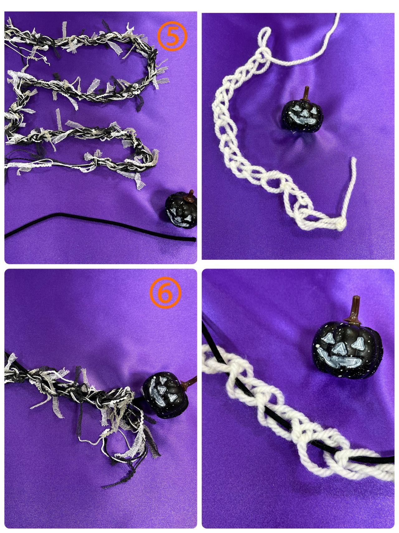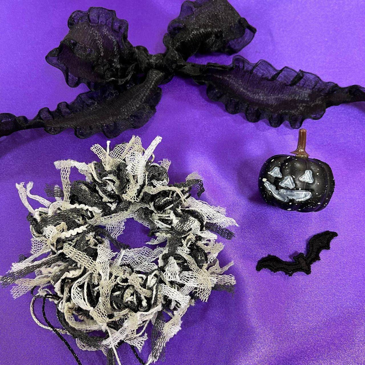 ハロウィンカラーで作る 指編みカンタン! かわいいシュシュ