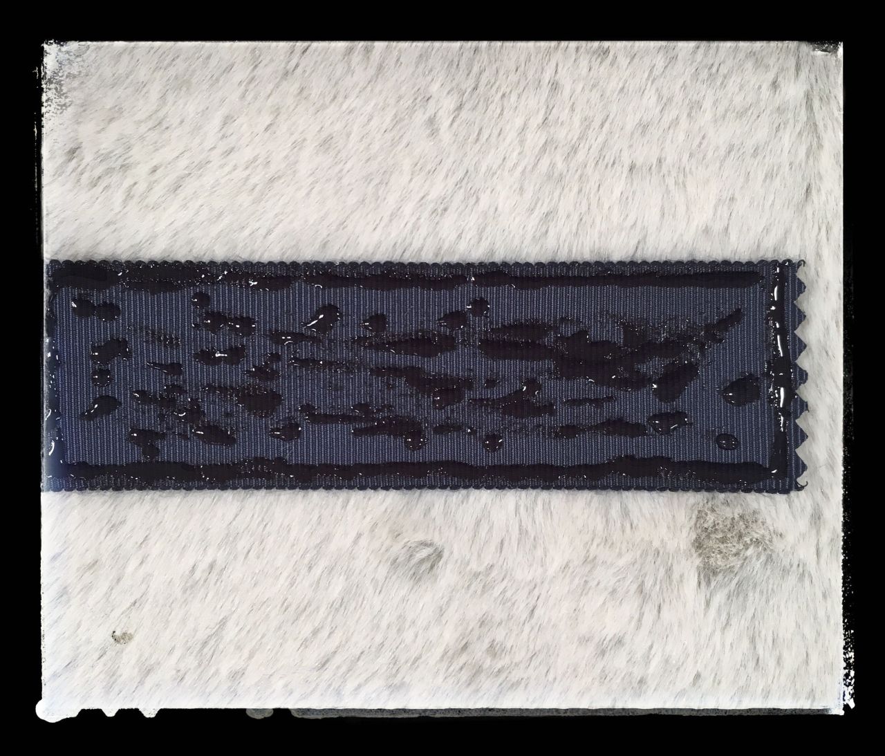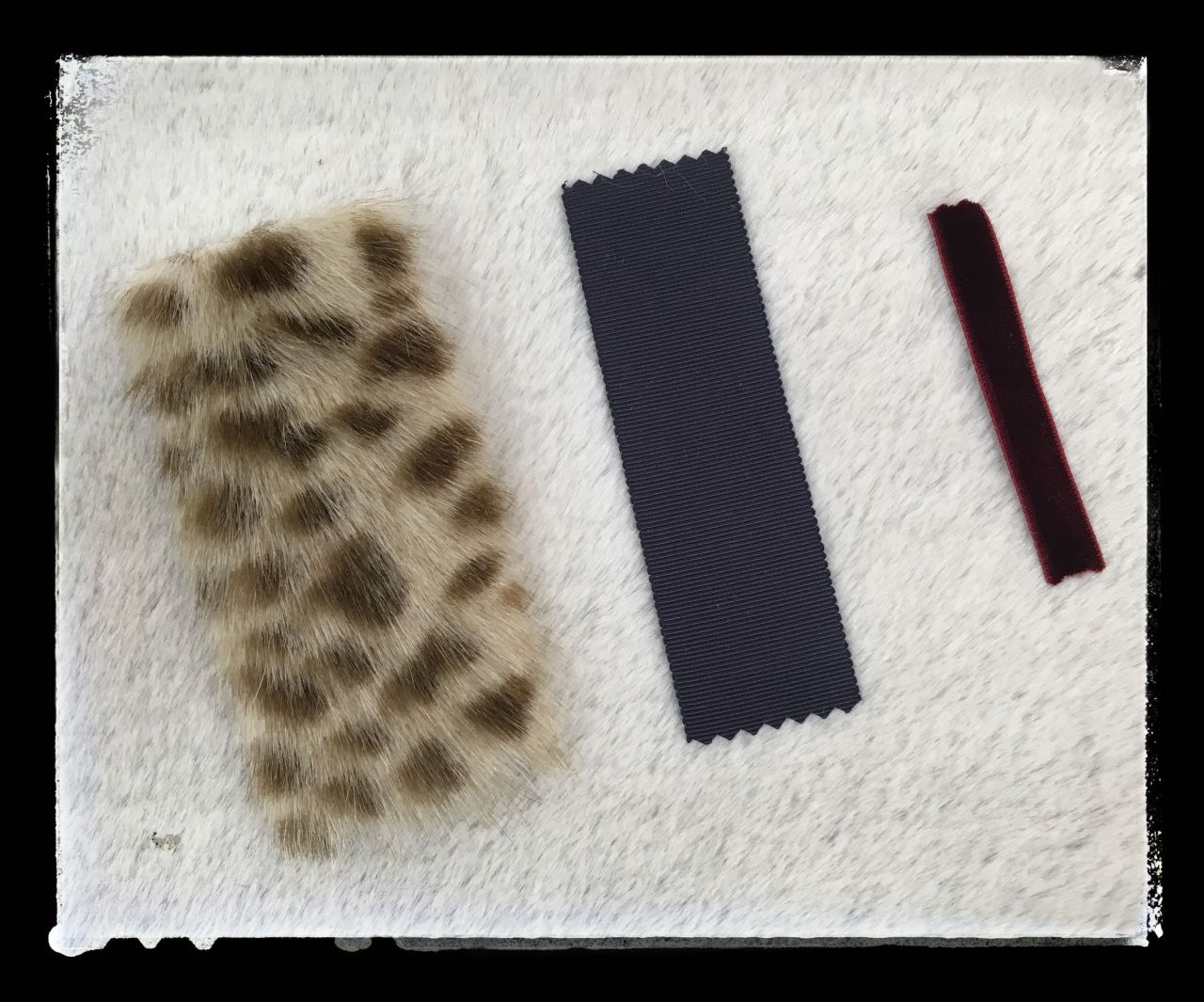 ①ファーテープの裏に裁ほう上手でリボンを貼り付けます。