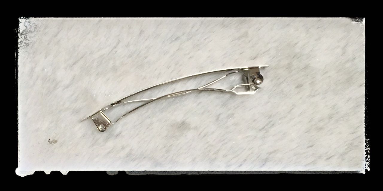 ⑤巻きつけたリボンが乾いたら、バレッタパーツと本体の裏側リボンをカネスチックで貼り付けます