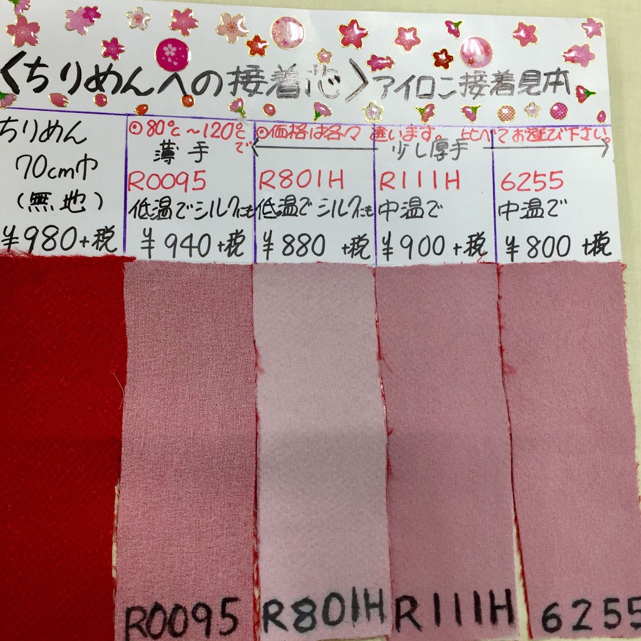ちりめんの貼り見本、接着芯の貼り方のレシピもご用意しております。