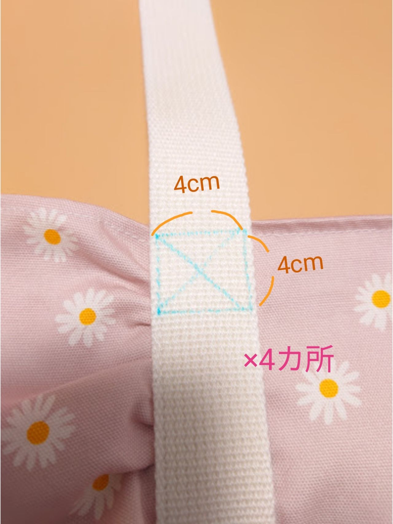 ④持ち手を縫い付けます。