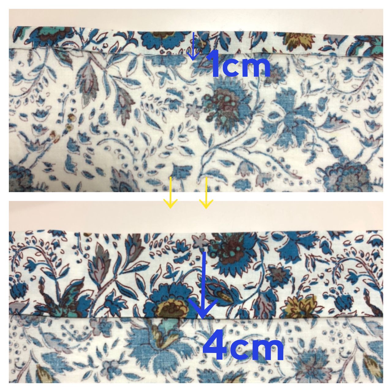1cm→4cmでアイロンをかけて折る