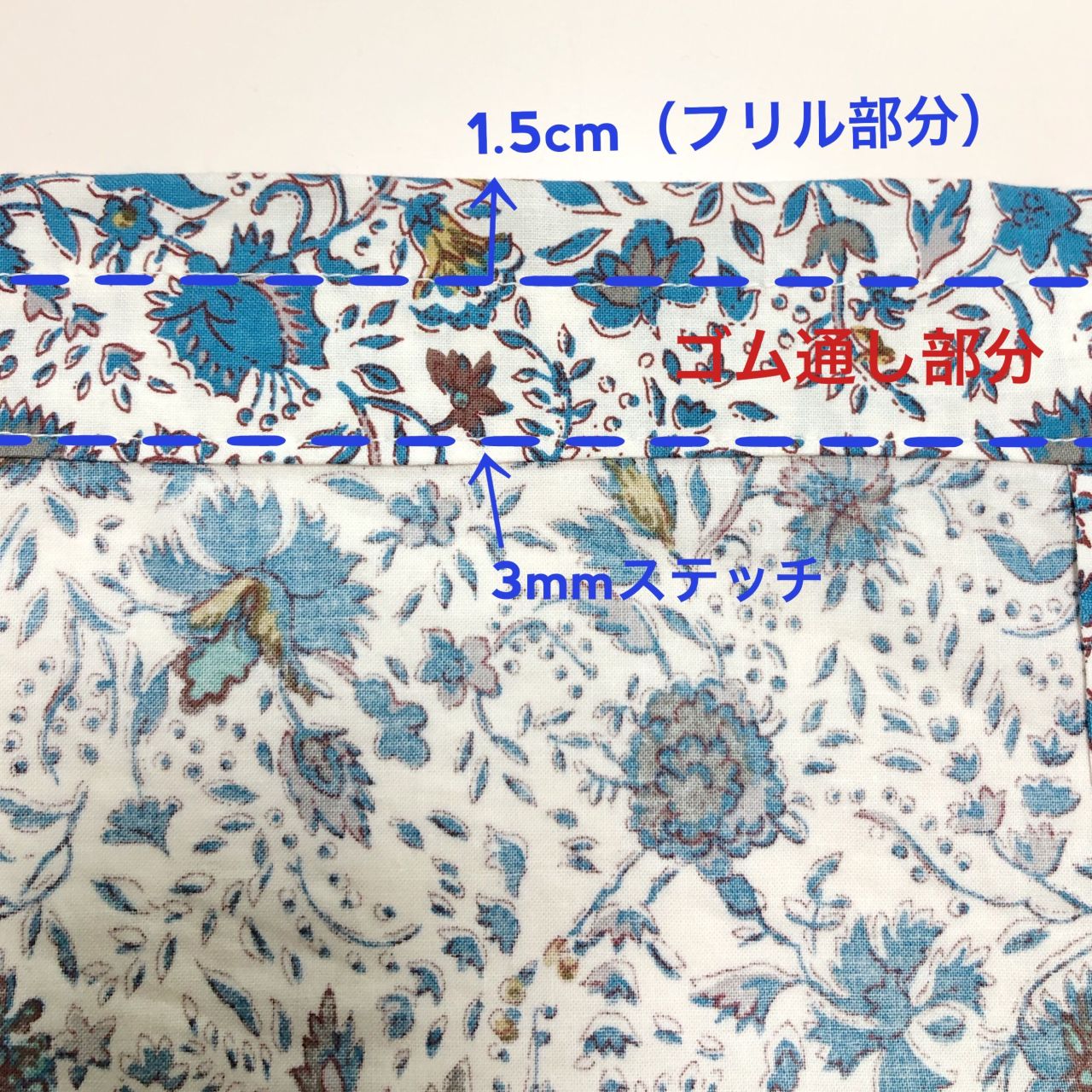 ●ウエスト部分にゴムを通す→重ねて縫い止める