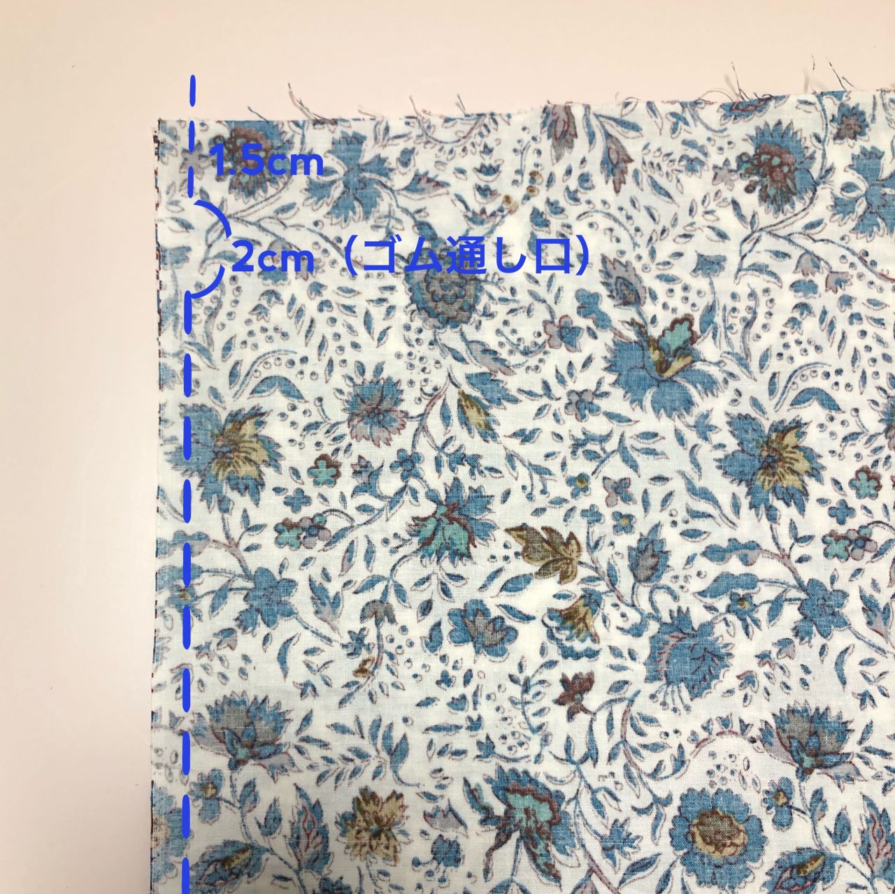 1cm→ 3cmでアイロンをかけて三つ折りする