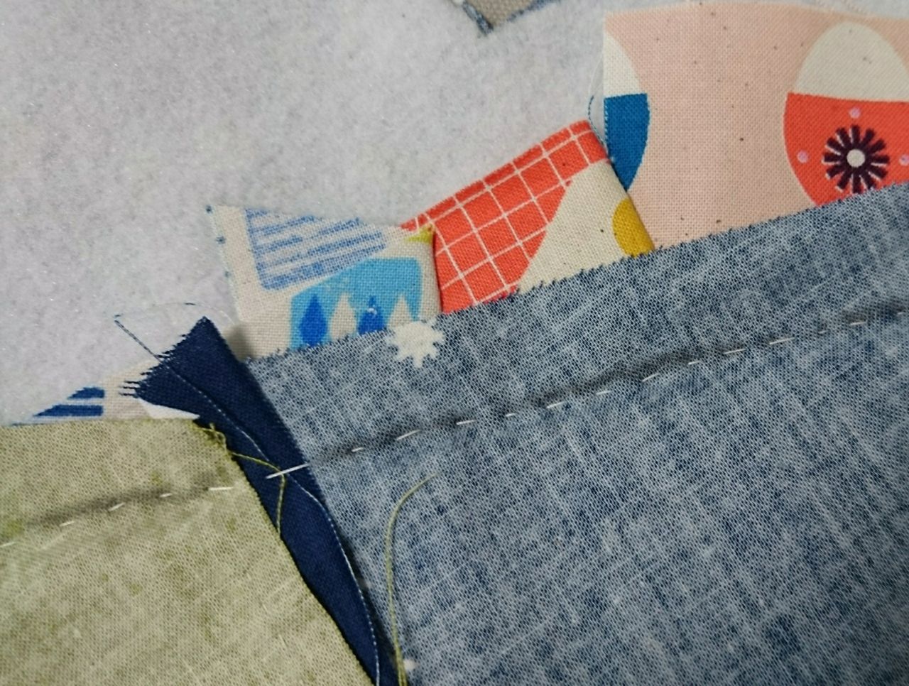キルト芯に直接縫い付けていきます。