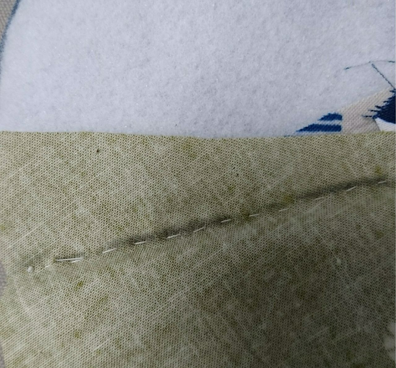 表生地+ キルト芯+ 裏生地をバイヤスで縫い付けていきます。