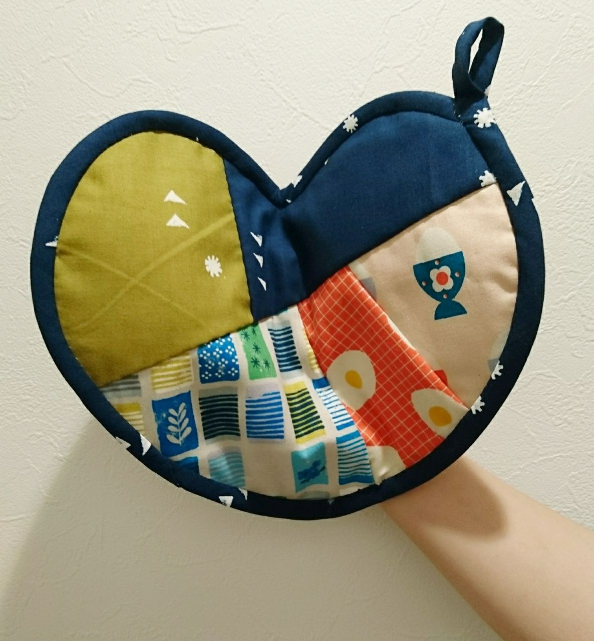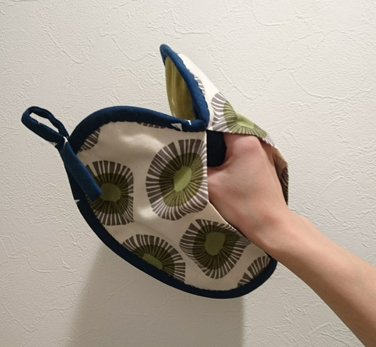 こんにちは!   溝の口ノクティプラザ店です。                                                                                       先日紹介致しました個性的なカットクロスで鍋つかみを作ってみました。