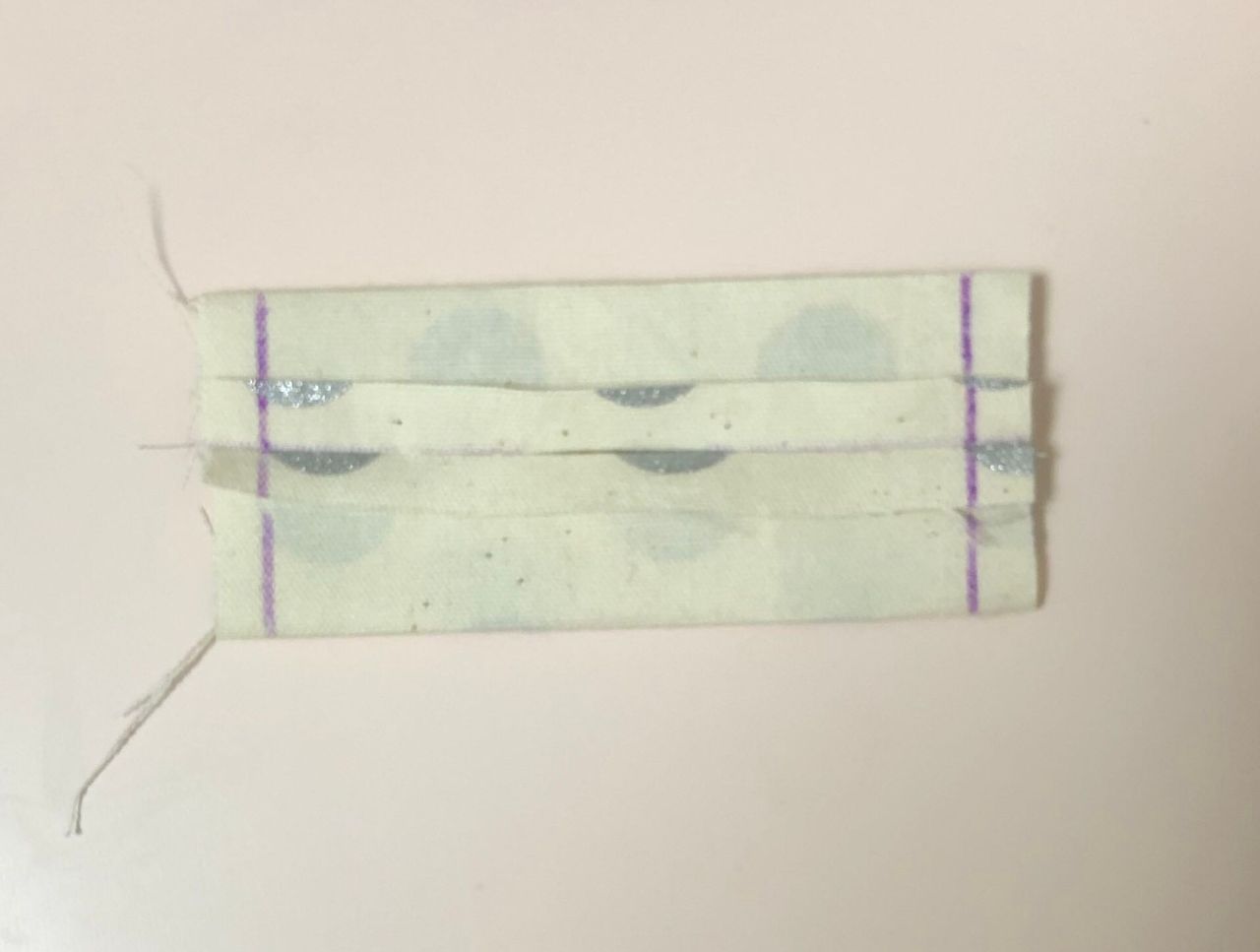 中心をジャバラにおり、テープを一周させて後ろ側で縫い止めます