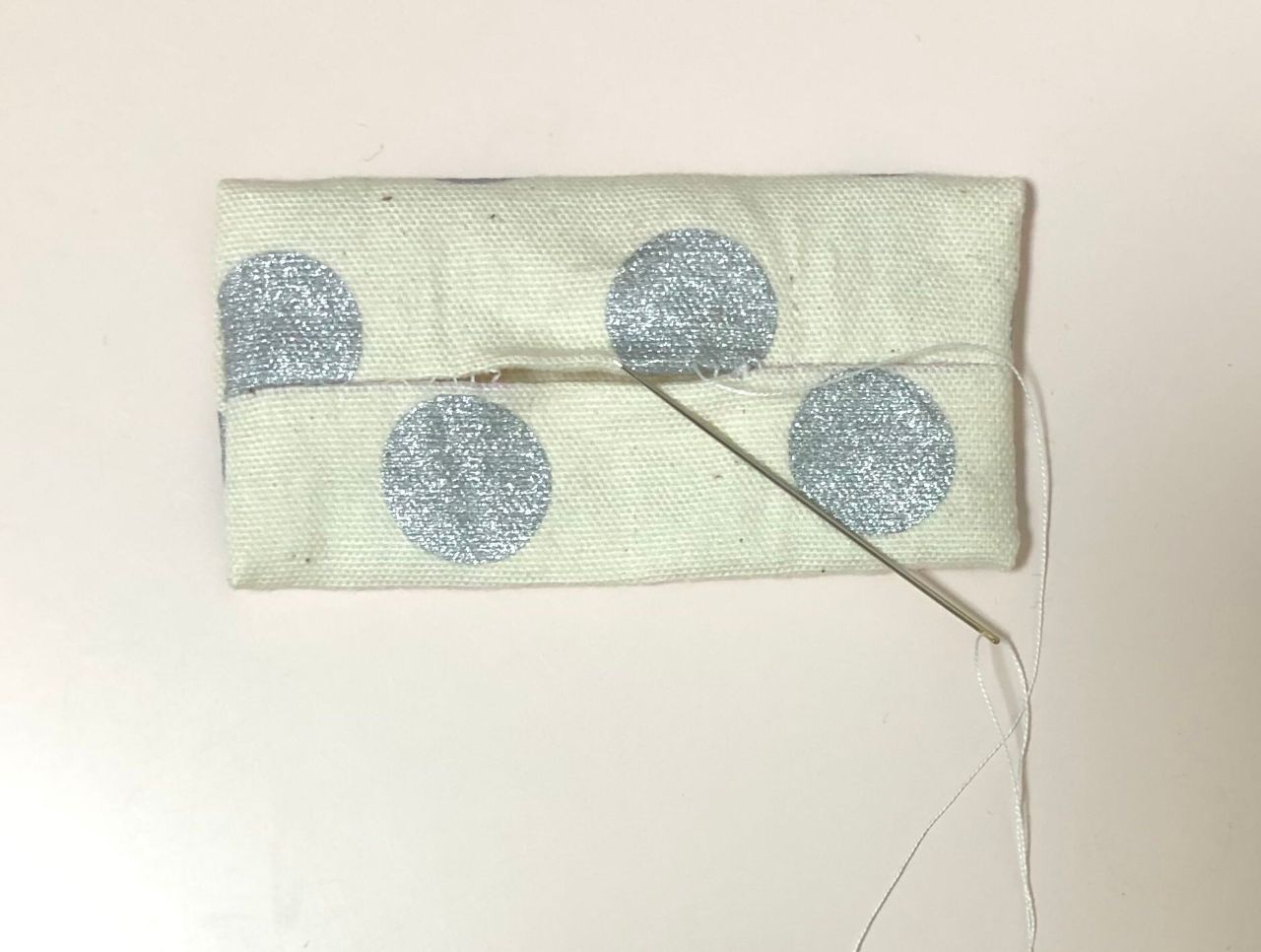 中心に使う生地は端がほつれないよう折り込みテープ状にします