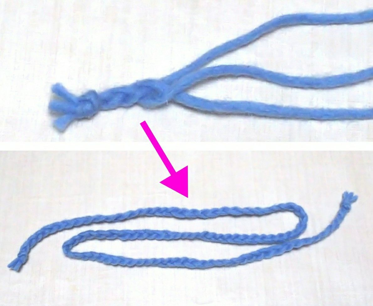 ⑤毛糸を約70cm×3本カットして