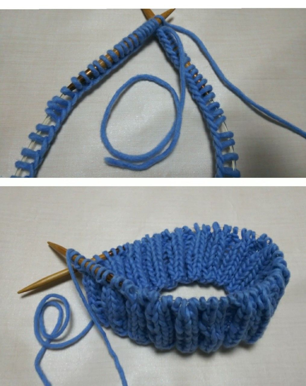 2目ゴム編みを10段編みます。