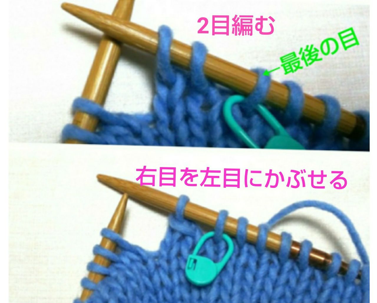 表目を2目編み、右の目(1目め)を