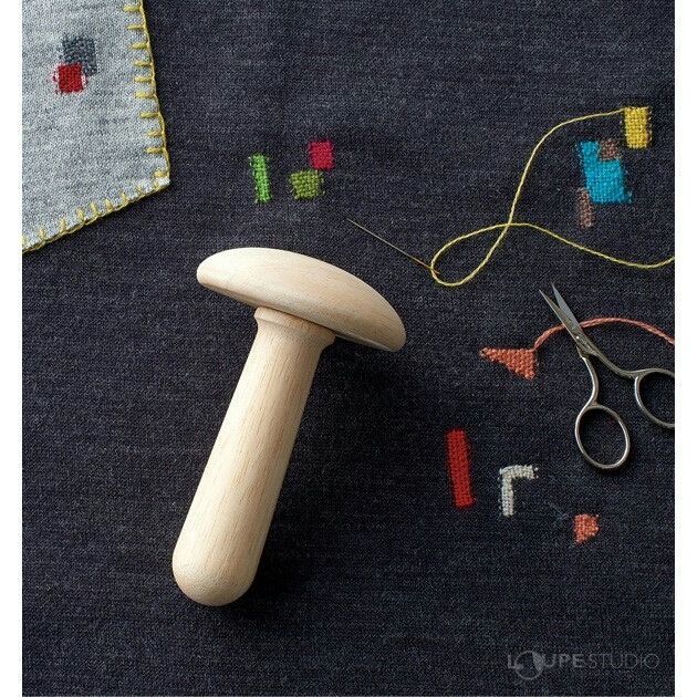 キノコ型の道具で、穴のあいた靴下や衣類を