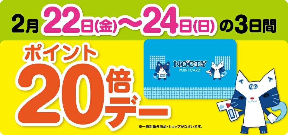 2019年2月22日(金)から24日(日)まで、ノクティポイント20倍デーに合わせて・・・