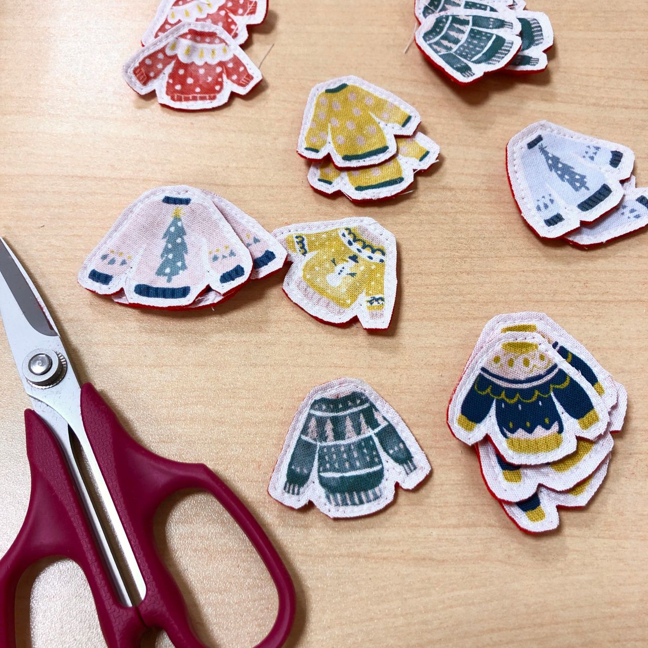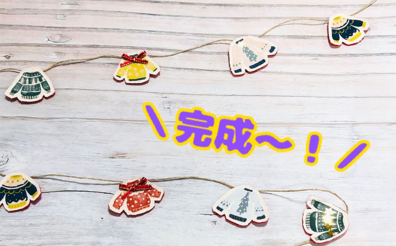セーターが沢山描かれている可愛い生地があったのでガーランドにしてみました(o^^o)