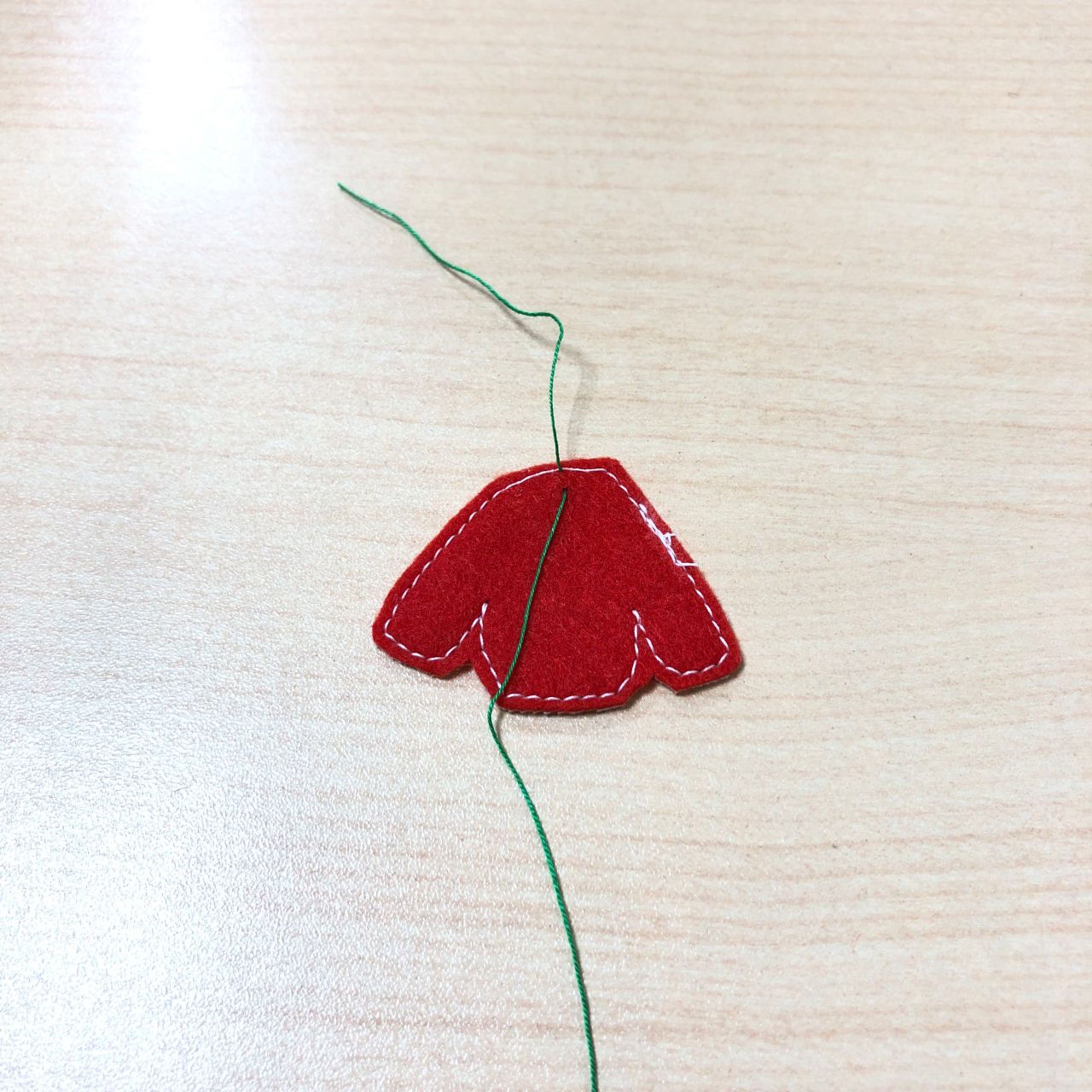 後ろのフェルト生地だけをすくって糸をつけていきます。