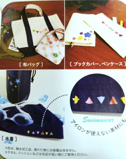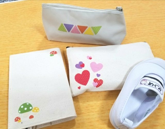シンプルなトートバッグや、ポーチなどに貼るだけで、こんなにかわいく変身します(^ー^)